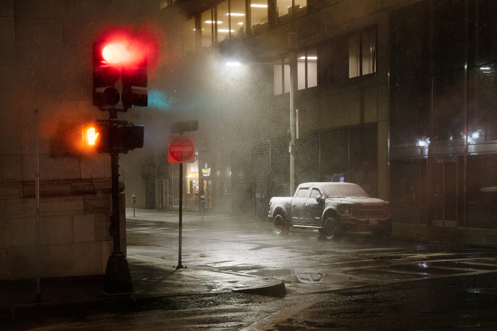 "Depuis douze ans que j'arpente l'univers visuel du climat et des intempéries, j'ai vécu la période des confinements successifs d'abord comme une vraie souffrance, puis comme une parenthèse très étrange au sein de mon parcours photographique. Seul sur les routes, j'avais l'impression de transgresser une règle. Cette transgression fut pourtant stimulante. Ainsi échappé du temps et de l'espace, isolé mais libre de mes mouvements alors que la population était contrainte à l'immobilité, j'ai continué d'explorer les méandres de ce mauvais temps nourricier et constitutif de nos âmes. J'ai photographié des paysages désertés, vidés de leurs touristes, tout un monde d'humidité, d'averses brutales, de neige aussi. C'est ce "mauvais temps" de toujours, celui de nos vacances pluvieuses, de nos chagrins, de nos joies, de nos émotions, de nos souvenirs d'enfance que je photographie."