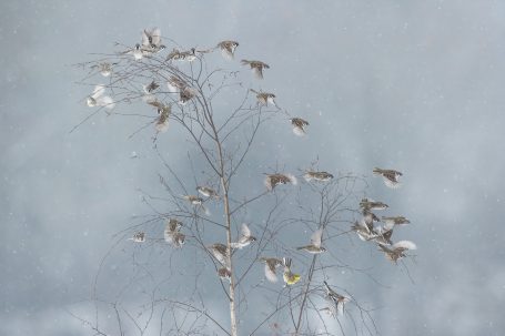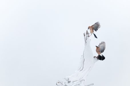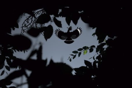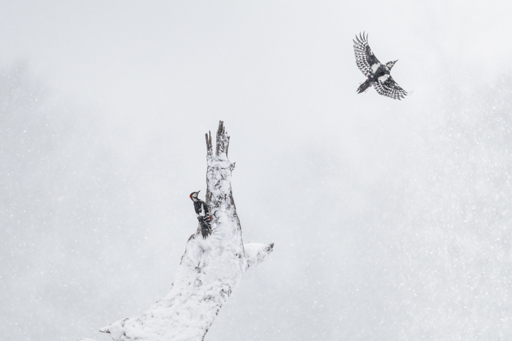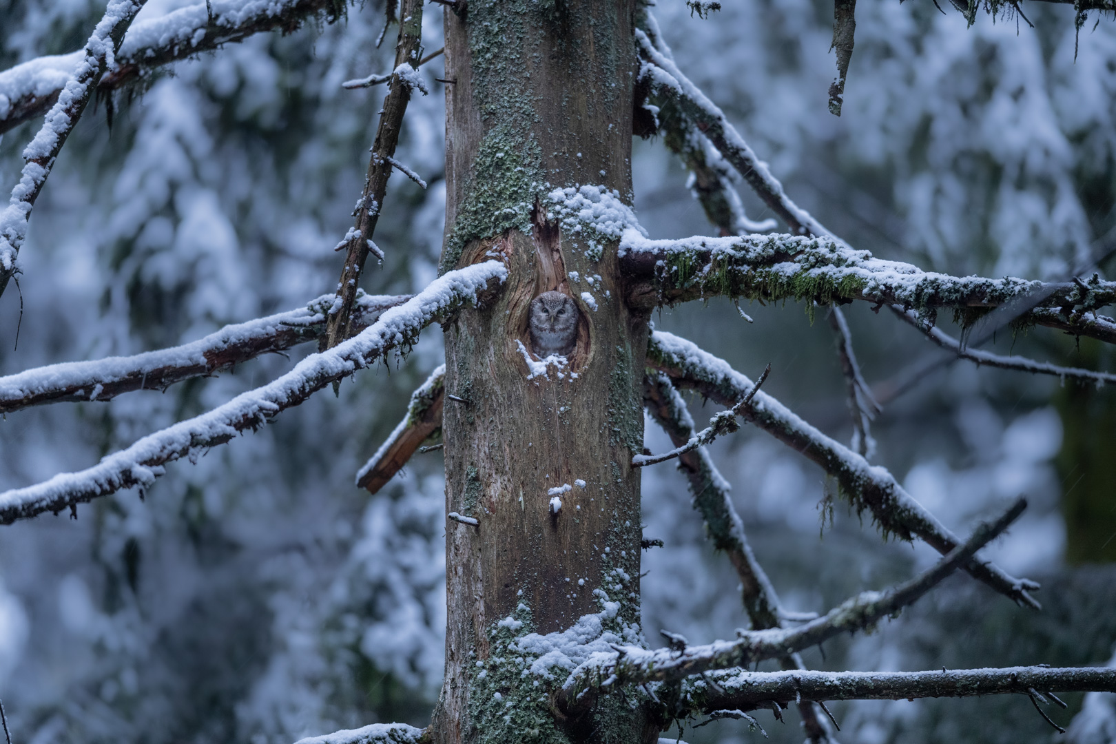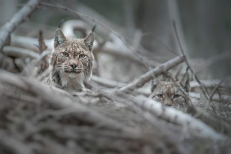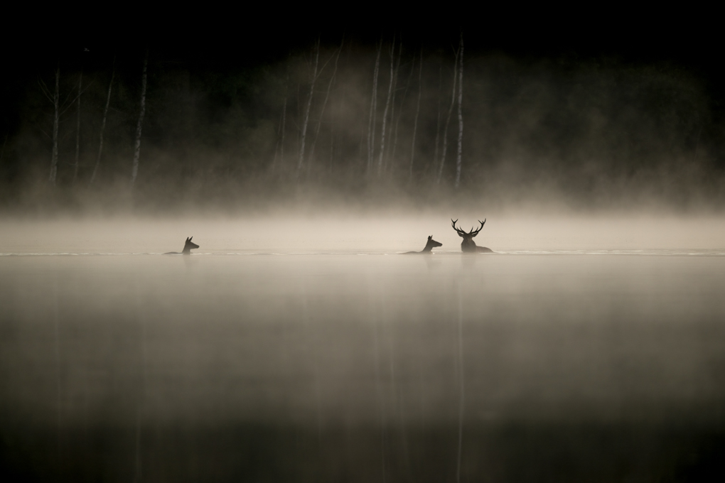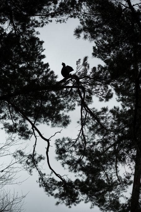 En lisière de forêt, trois silhouettes se dessinent dans la brume. Un sac que l’on devine lourd sur le dos, des jumelles autour du cou. Trois hommes avancent, en quête de lumières, de rencontres sauvages et d’histoires à se raconter auprès du feu. Commence alors l’attente immobile, à l’heure où s’entremêlent chants, cris et murmures, là où les « arbres écoutent aussi les oiseaux ». Où l’on s’endort sous les branches d’un sapin, rêvant d’entendre le brame d’un cerf ou l’appel du hibou grand-duc, croiser le regard du lynx, contempler la danse du grand tétras.